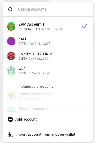 You can easily switch between networks and accounts directly in the Enkrypt extension while interacting with a DApp.