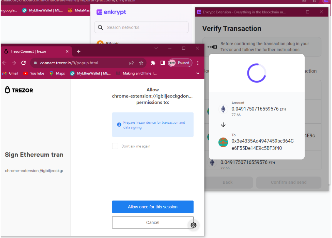 Keep in mind that in order to actually send any transactions, you will need to have your Trezor connected and confirm on the device. That's how using Enkrypt with Trezor allows you to get the best of both worlds – the unparalleled security of the hardware wallet and the flexibility of a multichain browser wallet.