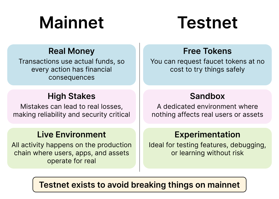 Testnets allow users and builders to test products out onchain before going live. Learn everything you need to know about testnets here!